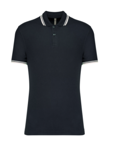 100% coton peigné. Pour les coloris chinés : 92% coton / 8% viscose. Maille piquée. Coupe ajustée. Patte de boutonnage col 2 boutons ton sur ton. Bande de propreté tissu principal à l'encolure. Fentes côtés avec bande de finition du tissu principal. Finitions bord-côte avec liserés contrastés au col et bas de manches. Double aiguille bas de vêtement.