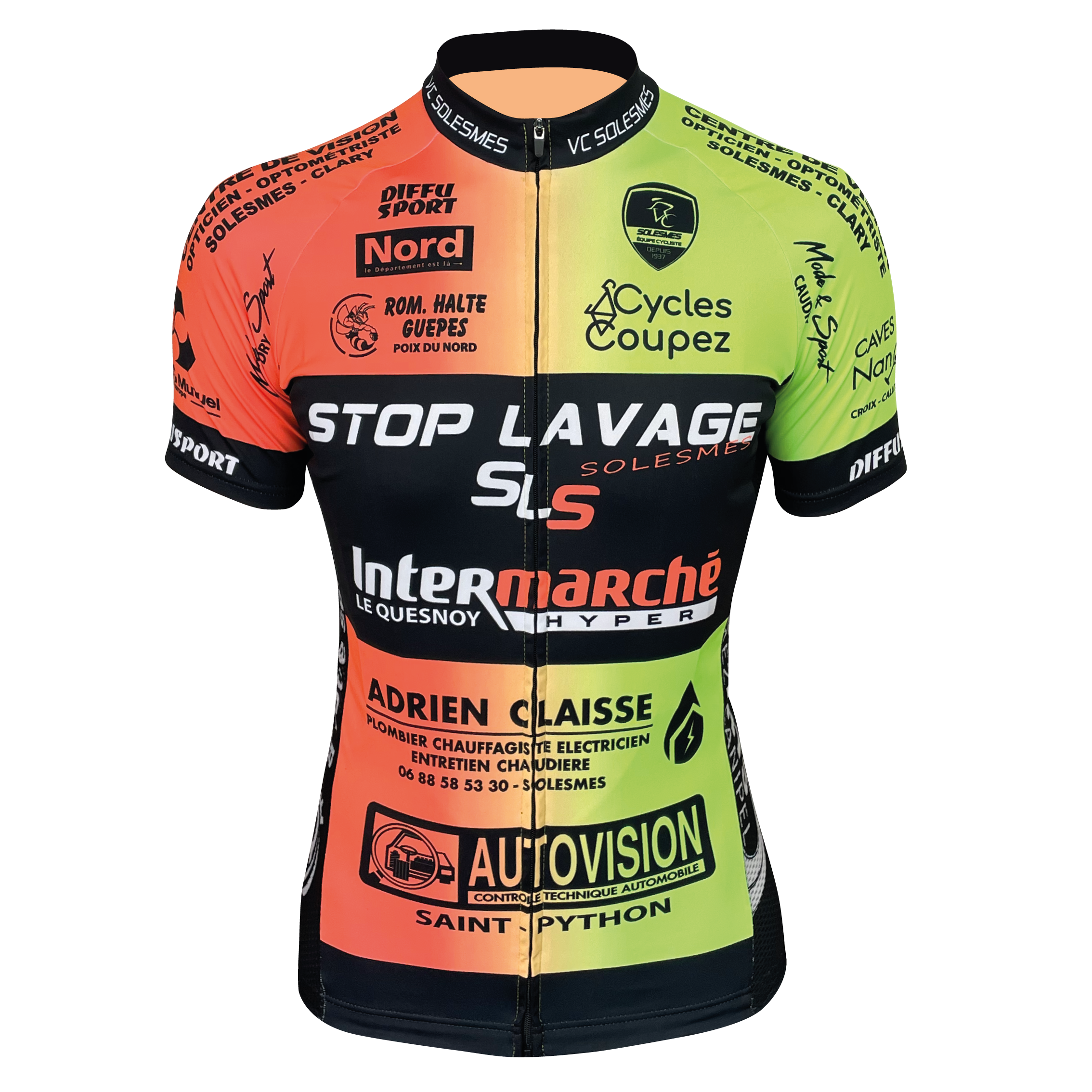 Equipped with an invisible safety zip, which will respect your design and/or sponsor marking, allows you to block the slider at the desired height. The 3 "reinforced" double-stitched pockets ensure good support for your supplies and perfect resistance when hanging bibs.
